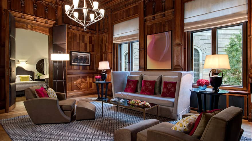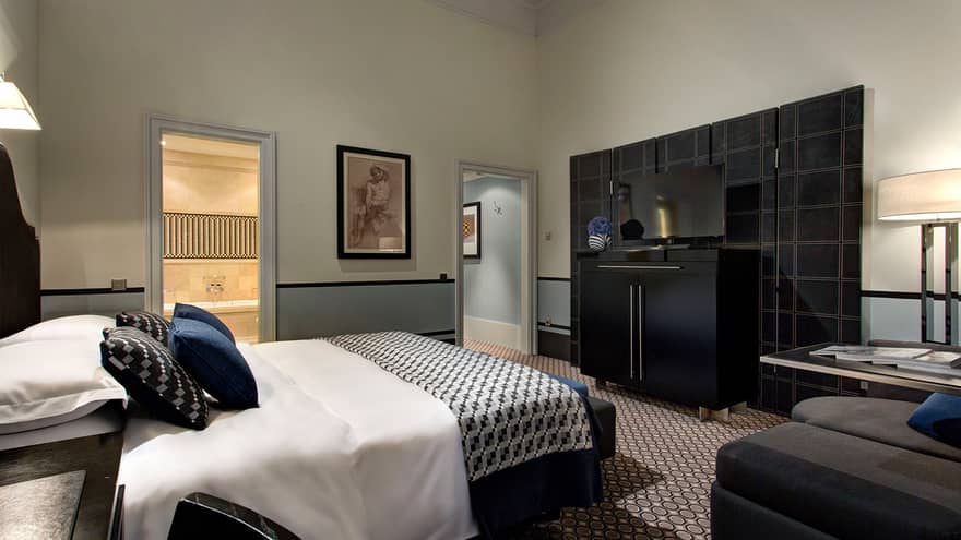 62-63 sqm | 1 King Bed or 2 Twin Beds | Sleeps 3With original heritage interiors, including parquet floors and wood panelling, this sumptuous suite offers prime city views and a luxurious living area for entertaining. Available with two bedrooms.