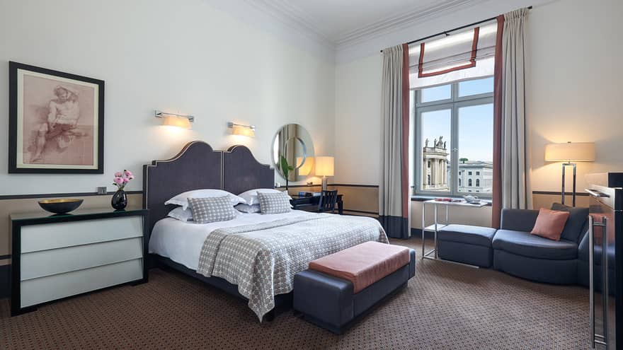 35-38 sqm | 1 King Bed or 2 Twin Beds | Sleeps 3With a prized view of Bebelplatz, this spacious guest room boasts high ceilings and abundant light, along with a wide desk and comfortable seating.
