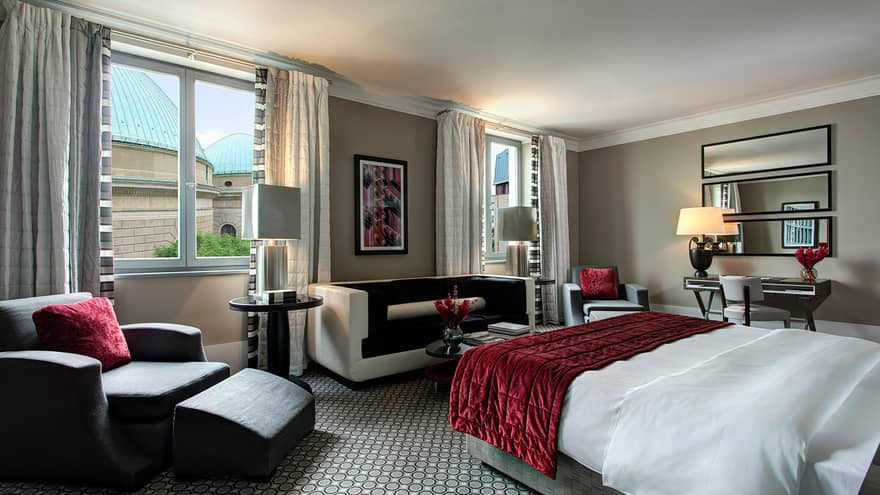 35-40 sqm | 1 King Bed or 2 Twin Beds | Sleeps 3Step out on your private terrace to savour views of our peaceful courtyard or St. Hedwig’s Cathedral. Inside, your room includes a desk and plush chaise longue.