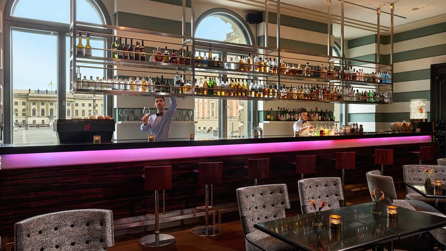 Daily: 12:00 - 24:00Meet for innovative cocktails and delicious snacks with an Italian accent. Overlooking Bebelplatz, this is the perfect place to stop for a drink before or after a performance at the nearby Berlin State Opera.